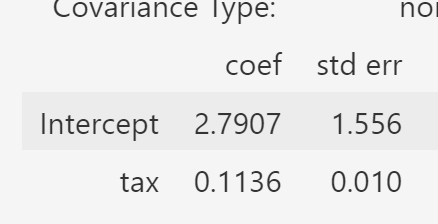 첫번째 컬럼은 베타값이고 두번째 컬럼은 표준오차