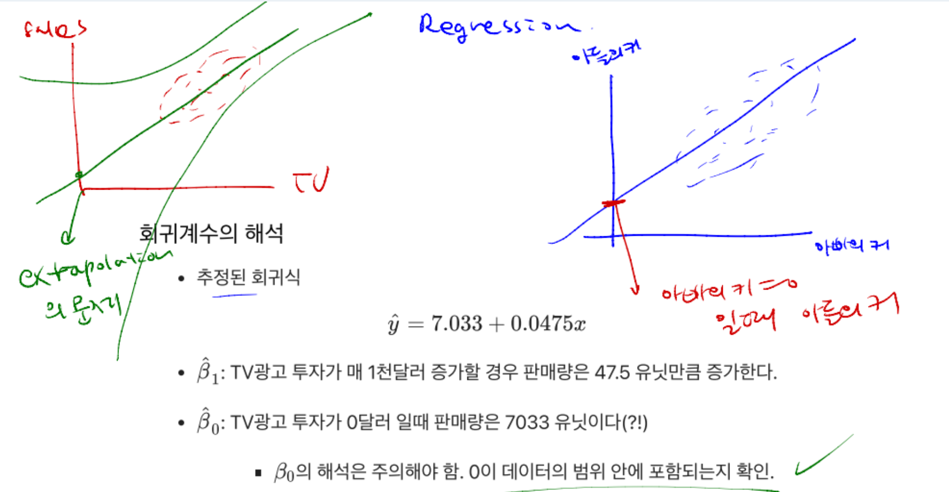 아빠의 키와 아들의 키의 상관관계를 볼 때 아빠의 키가 0이라는게 말이 안된다.