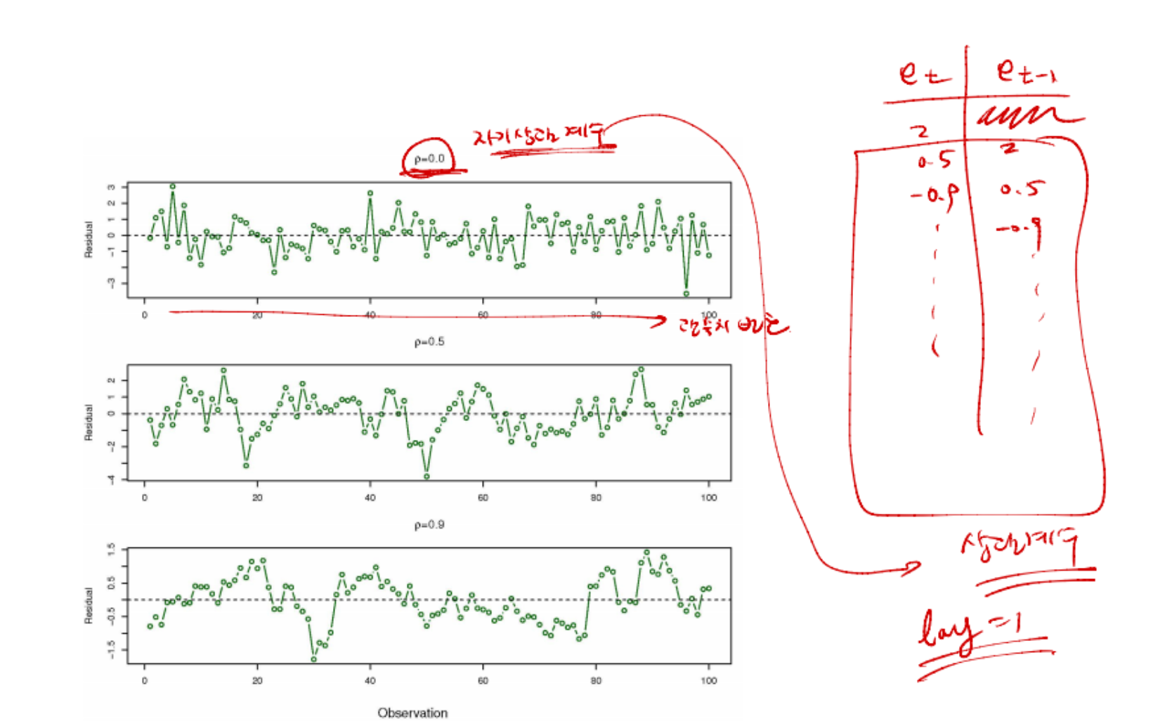 자기 상관계수를 알 수 있는 다른 방법은 더빈왓슨 통계량
