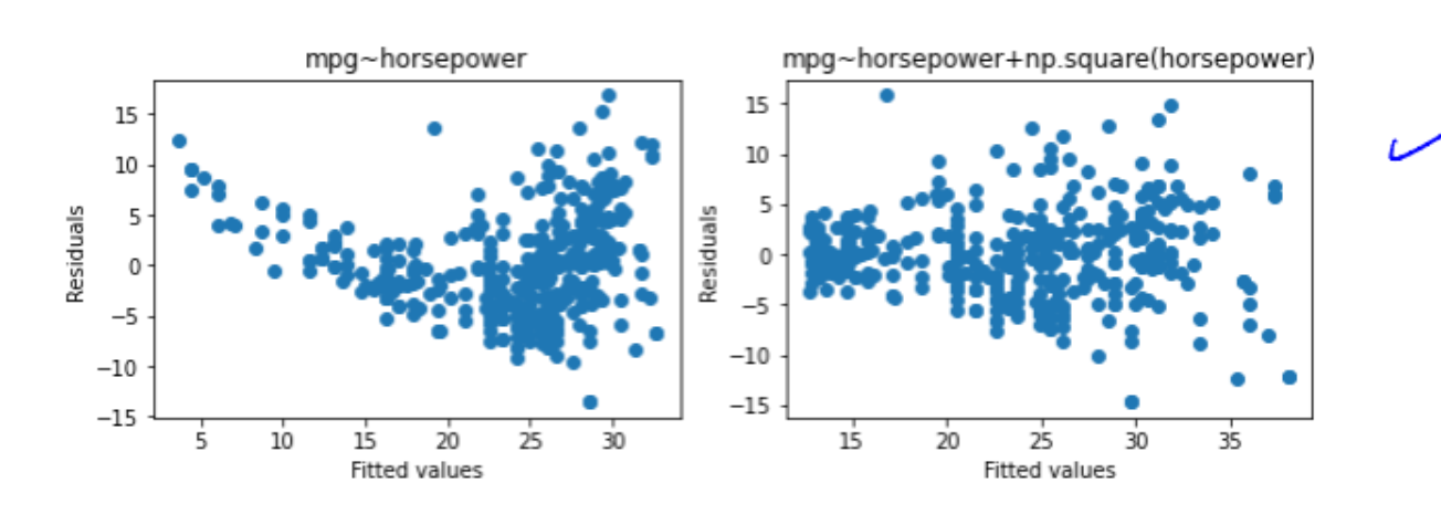 잔차의 비선형성을 다항회귀식으로 해결한것을 볼 수 있다.