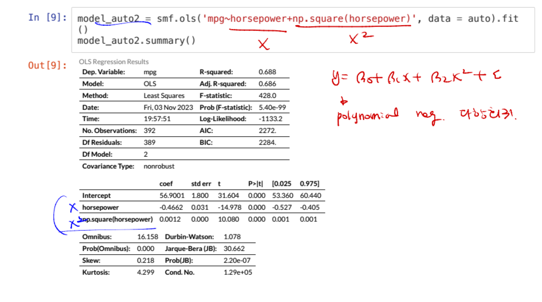방법: 밑 처럼 다항식을 통해 회귀식을 돌린다