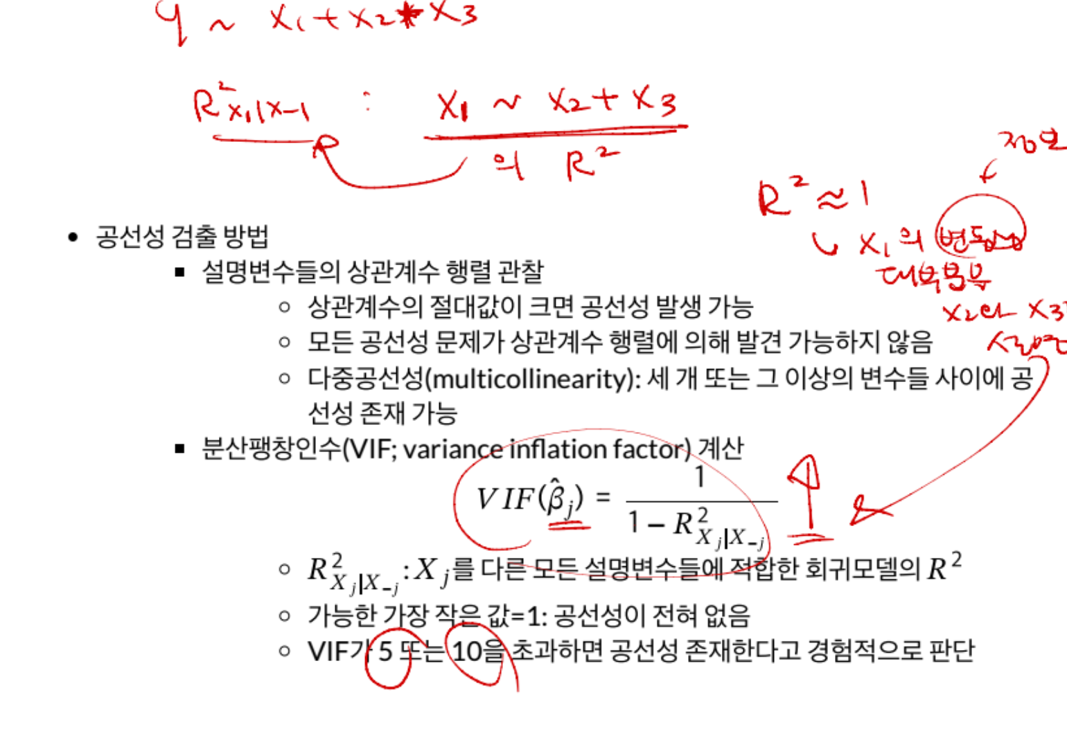 밑에서 나오는 R스퀘어는 x1을 x2와 x3로 설명이 가능한지에 대한 이야기